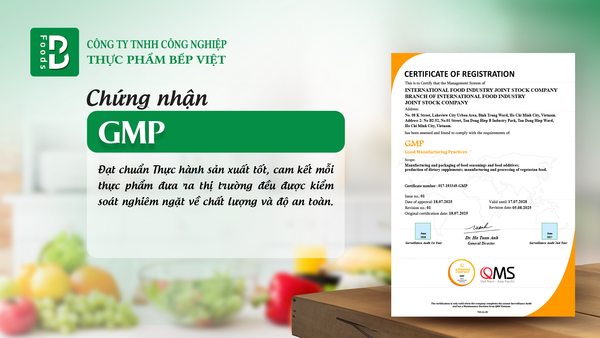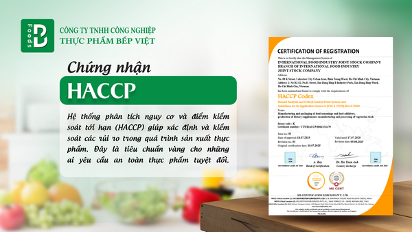 Đảm bảo toàn bộ quy trình từ nguyên liệu, sản xuất đến đóng gói đều đạt tiêu chuẩn vệ sinh an toàn thực phẩm quốc tế.